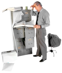 Keine Zeit für die wichtigen DingeMengen von PapierDer Aktenstapel türmt sichChaos in der AblageStändiges Suchen und Verschieben auf Morgen